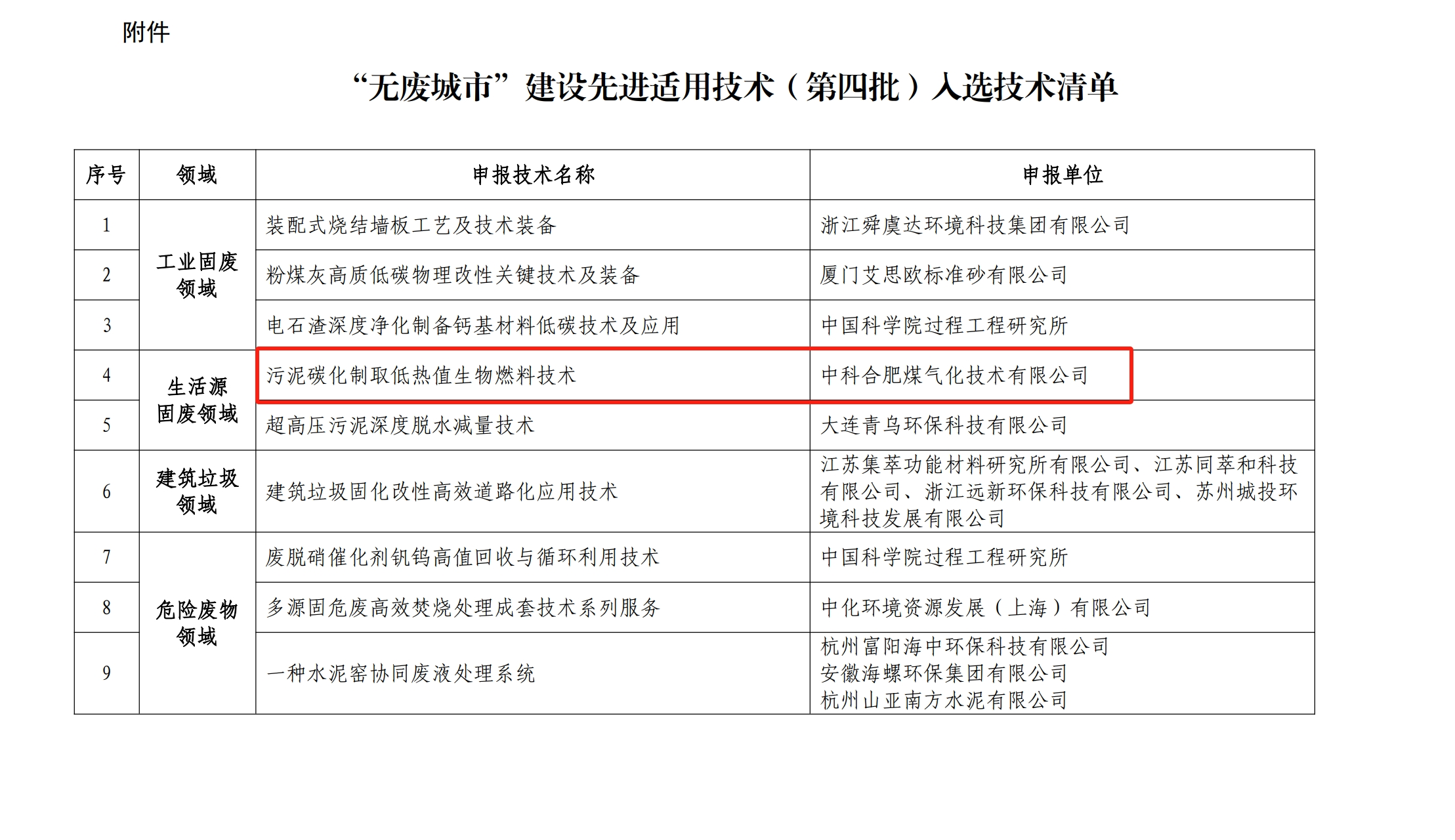 2024年12月6日,生態(tài)環(huán)境部環(huán)境發(fā)展中心正式發(fā)布了《“無(wú)廢城市”建設(shè)先進(jìn)適用技術(shù)(第四批)入選技術(shù)清單》。中科合肥煤氣化技術(shù)有限公司(簡(jiǎn)稱(chēng)“中合氣化”)自主研發(fā)的“污泥碳化制取低熱值生物燃料技術(shù)”成功入選。
